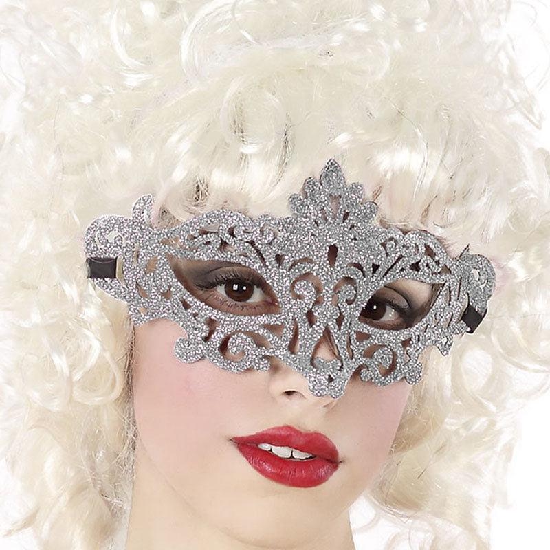 Original Silberne venezianische Maske zum Verkleiden auf Partys und im Karneval. Diese Maske im venezianischen Stil in Silber ist die perfekte originelle Ergänzung für Ihr Kostüm auf einer Faschings-, Karnevals- oder Kostümparty
