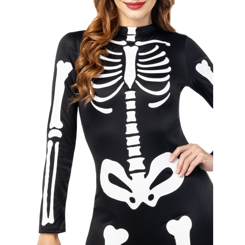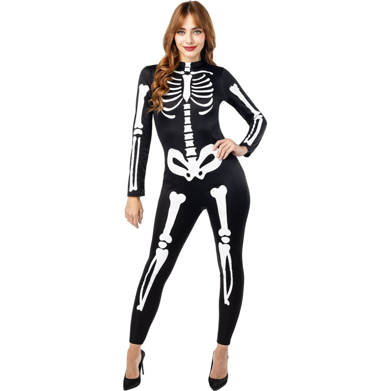 Stell dir vor, du betrittst die Halloween-Party und alle Blicke richten sich auf dich, eingehüllt im beeindruckenden Skelett-Silhouette-Kostüm für Damen. Die Halloween-Nacht ist voller Magie und Geheimnisse, und du bist dabei, die Hauptfigur dieser spannungsgeladenen Geschichte zu werden. Gehe selbstbewusst, säe den Schrecken mit Stil und lasse deine geheimnisvollste Seite für dich sprechen, denn jeder Knochen dieses Overalls betont deine Figur und macht dich zum Mittelpunkt jeder Feier. Wenn du eine komplette Transformation anstrebst und authentisch aussehen möchtest auf einer gruseligen Kostümparty, wird dieser Look dafür sorgen, dass sich alle an deine Anwesenheit erinnern.