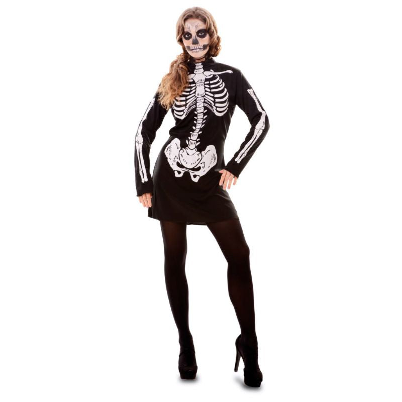 Stell dir vor, du gehst unter dem Vollmond in der Halloween-Nacht, spürst die Mystik in der Luft und die Aufregung, bei jedem Schritt Schrecken zu säen. Mit dem Skelettkleid für Damen verwandelt sich deine Silhouette und offenbart die verführerisch finstere Seite der Feier, indem es Eleganz mit einem gruseligen Touch vereint. Es ist ein perfektes Kostüm für jene Partys, bei denen es wichtig ist, in der Menge aufzufallen und die Knochen zum wahren Protagonisten des Abends werden. Wage es, die Erfahrung zu leben und verwandle deine Nacht in eine unvergessliche Geschichte, indem du unsere Kollektion von Halloween-Kostümen besuchst oder entdecke andere Modelle in der Rubrik Halloween-Kostüme für Damen.