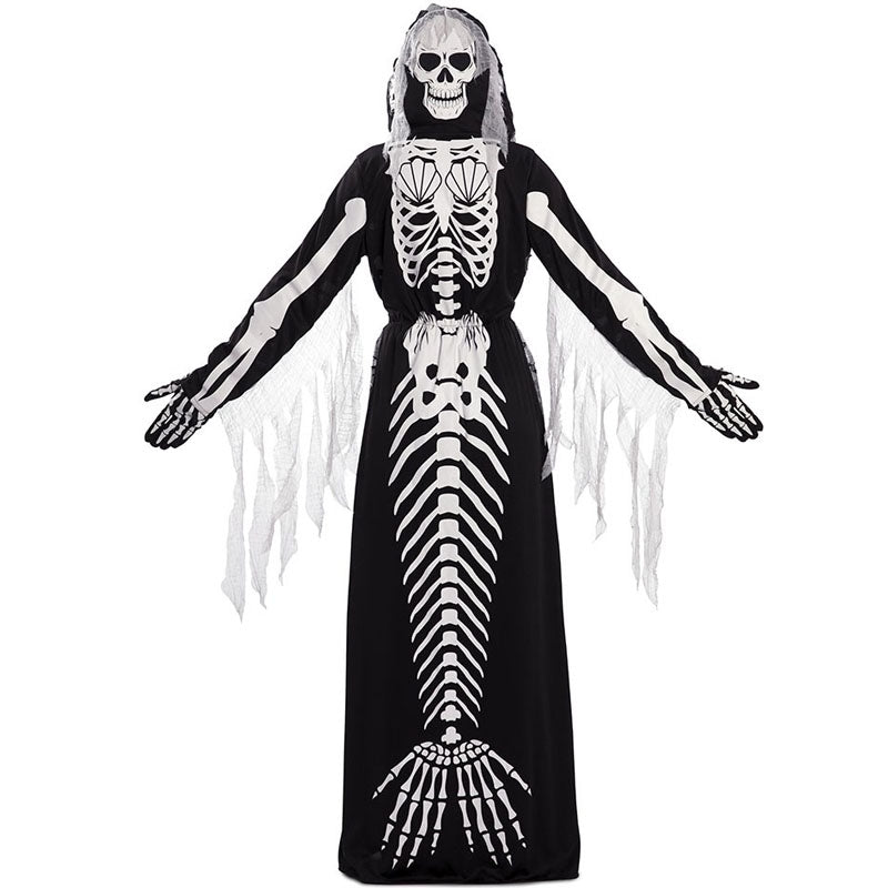 Das Original Tod und Skelett Meerjungfrau Doppelkostüm Halloween-Kostüm für Frauen enthält: Kapuzenkleid | Dieses Tod und Skelett Meerjungfrau Doppelkostüm Damenkostüm ist in 2 verschiedenen Größen erhältlich und wird jeden auf Ihrer nächsten Horror-Party umhauen.