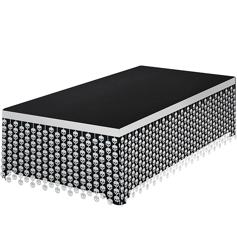 Bist du bereit, deiner Halloween-Party einen gruseligen und unterhaltsamen Touch zu verleihen? Mit unserer Tischdekoration mit Schädeln kannst du eine schaurige und terrorvolle Atmosphäre in jedem Raum schaffen. Mit den Maßen von 400 x 70 cm ist dieser Schmuck perfekt geeignet, um dein Spukhaus oder jeden anderen Ort, an dem du deine Halloween-Party feierst, zu dekorieren.Unsere Tischdekoration mit Schädeln ist darauf ausgelegt, deine Gäste zu überraschen und zu erschrecken. Jedes Detail, von den Knochen bis zu den dunklen Schatten, wurde sorgfältig ausgearbeitet, um ein realistisches und gruseliges Aussehen zu erzeugen. Platziere sie auf dem Haupttisch oder an einer strategischen Ecke, um deiner Feier einen Hauch von Angst zu verleihen.Neben ihrem schaurigen Aussehen ist unsere Tischdekoration mit Schädeln langlebig und robust, sodass du sie Jahr für Jahr für deine Halloween-Partys verwenden kannst. Sie ist die perfekte Ergänzung zu jedem anderen Halloween-Schmuck, den du im Sinn hast, sei es eine geschnitzte Kürbis, eine Fledermausgirlande oder ein Skelett im Garten.Wenn du nach Ideen und Dekorationen für eine gruselige Party suchst, ist unsere Tischdekoration mit Schädeln eine sichere Wahl. Verpasse nicht die Gelegenheit, mit diesem beeindruckenden Halloween-Schmuck eine schaurige Atmosphäre zu schaffen. Trau dich, mit Angst zu dekorieren, und überrasche deine Gäste mit einer unvergesslichen Party!