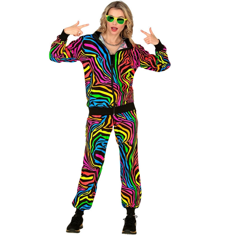 Das Original Trainingsanzug mit Fluor-Print-Kostüm für Erwachsene enthält: Jacke und Hose | Dieses 80er Jahre Retro-Trainingsanzug in Fluor-Farben Herrenkostüm ist in 4 verschiedenen Größen erhältlich