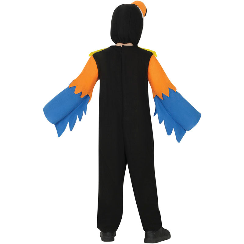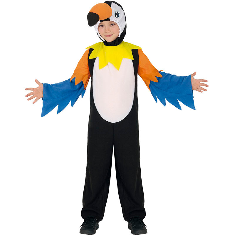 Das Originalkostüm für Jungen und Mädchen von Tukan enthält: Anzug und Kapuze | Dieses Kinderkostüm, das Exotischer Tukan nachahmt, ist in 3 verschiedenen Größen erhältlich