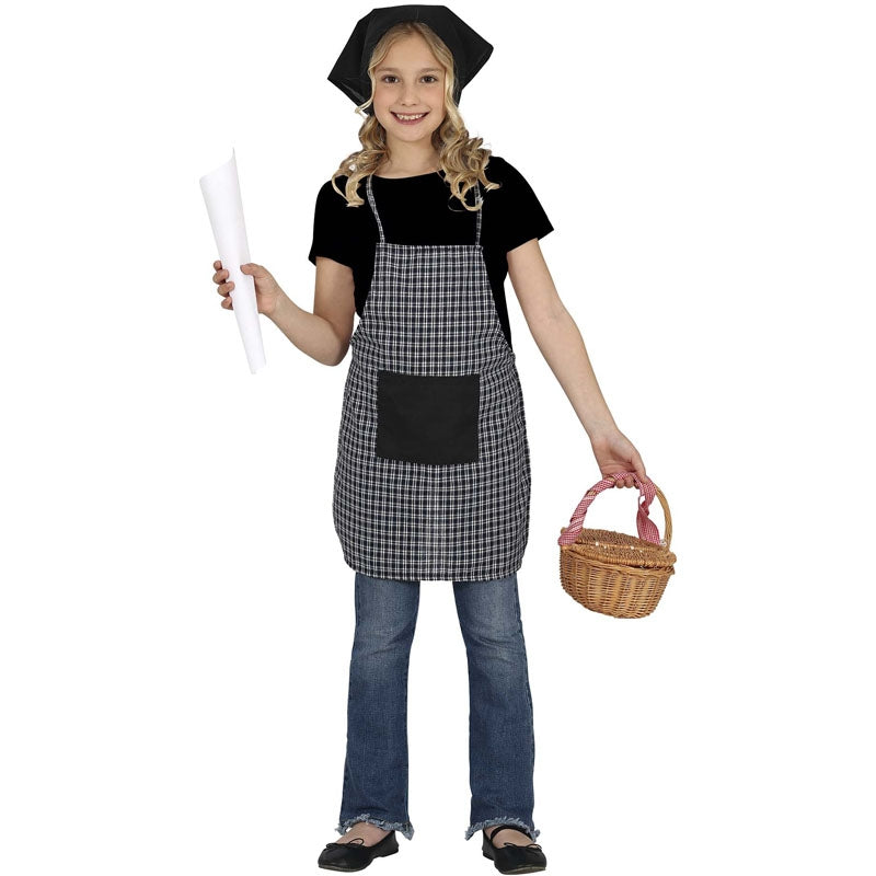 Verkäufer Kastanie kariert Weihnachtskostüm für Mädchen beinhaltet: Schürze und Halstuch | Dieses Kastanienverkäufer Kostüm für Kinder ist in 1 verschiedenen Größen erhältlich und ist eine tolle Idee für Weihnachten