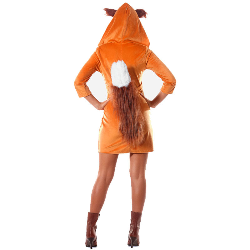 Das Original Waldfuchs-Kostüm für Frauen enthält: Kapuzenkleid mit aufblasbarem Schwanz | Dieses Waldfuchs Damenkostüm ist in 2 verschiedenen Größen erhältlich.