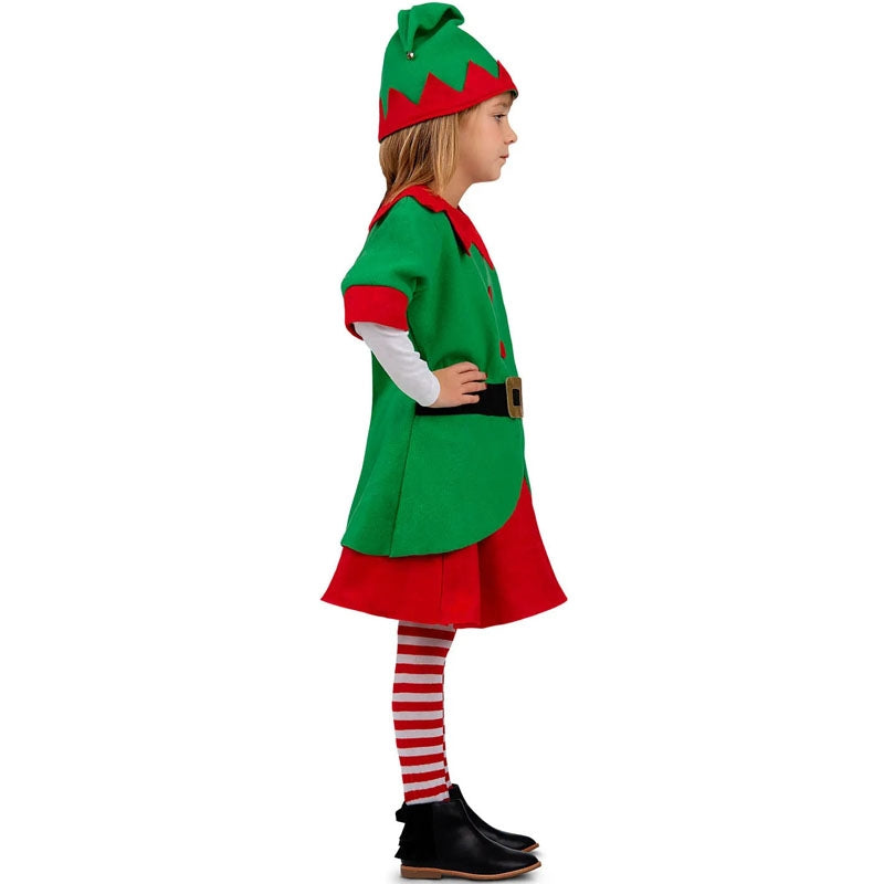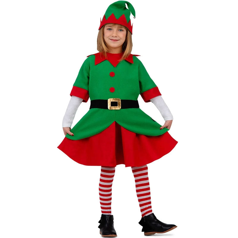 Elfe Weihnachtsmannhelferin Weihnachtskostüm für Mädchen bestehend aus: Hemd mit Gürtel, Rock, Strümpfe und Mütze | Das Elfe Weihnachtskostüm für Mädchen ist in 4 verschiedenen Größen erhältlich und eignet sich perfekt für einen weihnachtlichen Look
