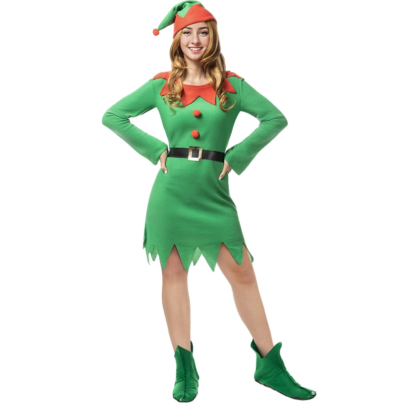 Dieses exklusive Kostüm für Weihnachtswichtelin Frauen enthält: Kleid, Hut und Gürtel | Dieses Damenkostüm, um sich in Verzauberte Elfe zu verwandeln, ist in 5 verschiedenen Größen erhältlich