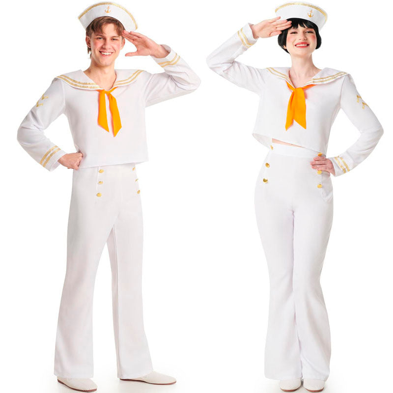 Weiße und goldene Matrosen Paarkostüm für Erwachsene ist auf Lager und wird versandt, sobald es wieder verfügbar ist
