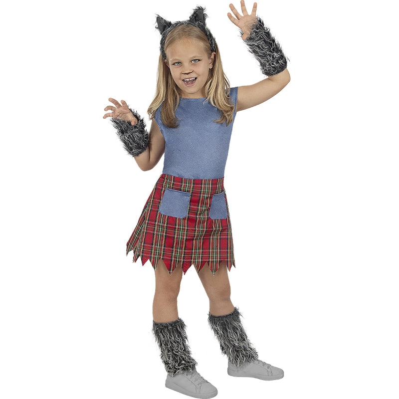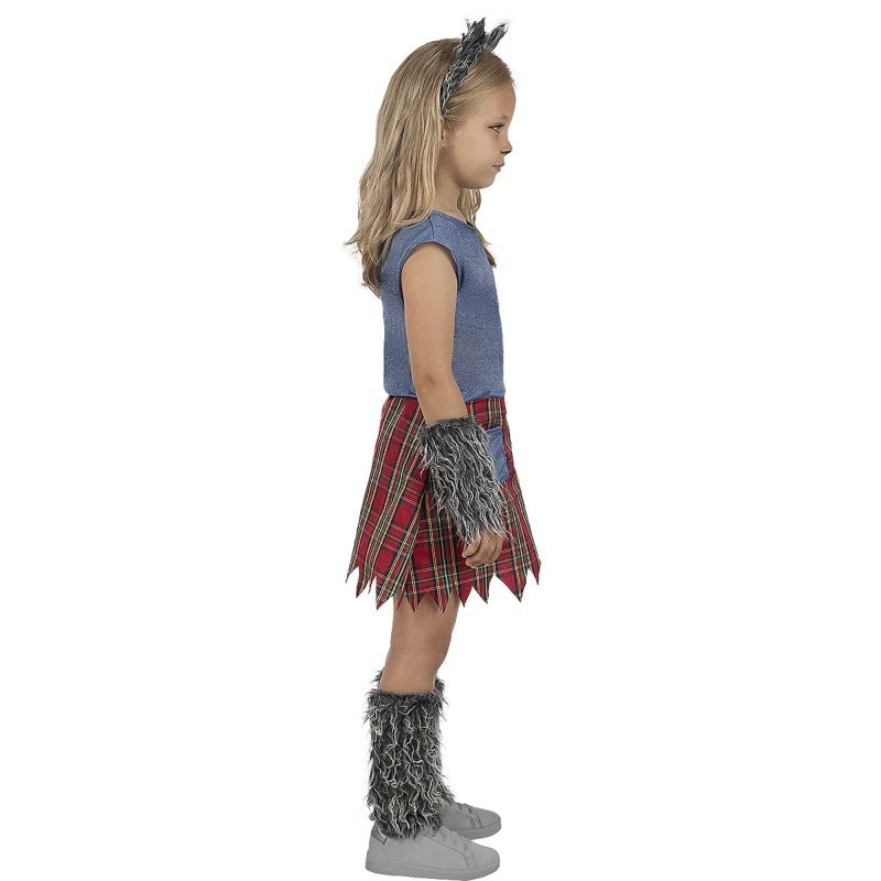 Das Original Werwölfin-Kostüm für Mädchen beinhaltet: Kleid, Beinstulpen, Stulpen und Haarreif | Dieses Wilde Werwölfin Kinderkostüm ist in 4 verschiedenen Größen erhältlich